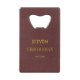 Cet élégant ouvre-bouteille de carte de crédit design personnalisé pour les groomsmen est le cadeau idéal pour vos groomsmen. Cet ouvre-bouteille peut être customisé avec le nom de chaque marionnettiste, ce qui en fait un gardien réfléchi et unique. Sa taille compacte permet de transporter facilement dans un porte-monnaie ou une poche, en s'assurant que vos futurs clients auront toujours un outil élégant à la main pour ouvrir leurs boissons préférées. Donnez à vos groomsmen un cadeau qu'ils apprécieront et chériront vraiment pour les années à venir. Entièrement personnalisable.