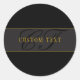 Elegant Script Monogram Black & Gold Runder Aufkleber