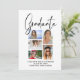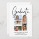 Élégant Script Multi Photo Graduation Faire-part comprend cinq de vos photos préférées de votre diplôme d'études supérieures ou secondaires avec le script moderne tourbillonnant de calligraphie noire superposition "Graduate". Personnalisez en modifiant le texte dans les zones de texte fournies. Simple, élégant et classe. Créé par ©Evco Studio www.zazzle.com/store/evcostudio