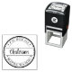 Add a touch of sophistication to your mail with this elegant script name return address stamp. Featuring a classic circular design with a banner for your name and space for your address, this stamp is perfect for sending out invitations, thank-you notes, or any correspondence. The timeless black and white design ensures it will complement any stationery. Make your return address stand out with this stylish and practical self-inking stamp.