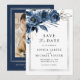 Elegant Script Navy Blue Floral Photo Wedding Save The Date