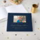 Ask your friends and relatives to help in cherishing and honoring the loved one you've lost by writing down inspiration quotes or memories they have of your loved one or anything else that reminds them and you of the person who's passed away. This navy blue and gold foil funeral guestbook is the perfect way to save it all. Personalize with a photo of your loved one on the cover, and their name and years living printed in real gold foil. You can change the foil to silver or rose gold, if desired. The memorial guestbook features a simple yet elegant design with a thin gold foil border around your photo and your loved one's name in an elegant gold foil script.