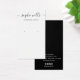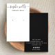 Police de script élégante avec swashes. Code QR à l'arrière Écran d'oreille noir et blanc élégant avec deux "marqueurs" de trous imprimés - ce ne sont pas des trous réels.