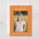 Annoncez votre graduation avec cet élégant script orange graduation faire-part. Ajoutez une photo et un texte de personnaliser à l'avant et au dos pour créer votre propre faire-part de graduation unique. Cette invitation est disponible en différentes couleurs. Visitez ma collection de diplômes pour voir toutes les options.