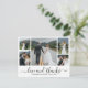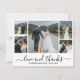 Mariage de script moderne et élégant 5 Photo Collage Carte de remerciements en noir et blanc. Modèle de carte mariage minimaliste et élégant avec cinq (5) photos de grille et une "Love and Merci" lettrage manuscrit calligraphie swash tail police. Personnalisez votre nom et merci message. Si vous avez besoin d'aide ou d'un article correspondant, veuillez contacter le concepteur !