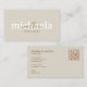 Modern minimalist business cards with fully editable text offer a versatile and professional solution for entrepreneurs, freelancers, and small business owners across all industries. This elegant design features a soft beige background with a sophisticated mix of bold serif and flowing script fonts, creating a balanced and eye-catching name display that can be personalized for any profession. The back of the card is cleanly organized, with space for contact information, website, location, and social media handles, along with a functional QR code that links directly to your digital presence. With every detail customizable, this business card template is ideal for consultants, coaches, stylists, creatives, marketers, or anyone seeking a polished and modern brand identity. Its neutral color palette and sleek typography make it suitable for both personal and corporate use, leaving a lasting impression in meetings, conferences, and networking events. Professional, stylish, and flexible, this design adapts seamlessly to your brand’s voice and vision.