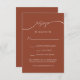 Notre Elegant Script Rustic Terracotta Wedding Carte RSVP est parfait pour votre mariage classique ou minimal. Avec la combinaison parfaite de la typographie simple et de la calligraphie romantique et de l'esthétique chic shabby. Personnalisez le texte pour lire ce que vous voulez.