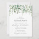 Un design élégant avec des fleurs vert aquarelle. Vous pouvez personnaliser le libellé, la taille du texte, les couleurs et la police de cette invitation de mariage.