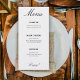 Elevate your reception tablescape with this elegant black and white wedding menu card. Designed with graceful script typography and refined serif accents, this minimalist menu layout brings timeless sophistication to your place settings.