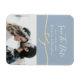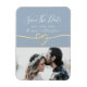 Einfach, minimalist, modern script, elegant dusty blue wedding save the date date magnet with falsch gold rope heart and foto.