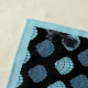 Fügen Sie Ihrer Badetuchkollektion etwas Eleganz hinzu. Muscheln in blau auf dem Kontrast schwarz mit einem blauen Rand.