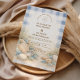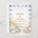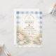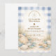A refined coastal wedding design featuring an elegant oval wreath of seashells, oyster shells, starfish, and soft sea glass accents. Neutral sandy tones blend with muted ocean blues and delicate dune grasses to create a serene seaside aesthetic. The warm parchment background enhances the natural textures while maintaining a timeless, elevated feel. Perfect for a romantic beach celebration with classic coastal charm.