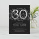 Elegant silberschwarz 30. Geburtstag Party Einladung. Individuell anpassbares modernes feminines Design mit Rose botanischen Akzenten und Imitaten Glitzer Silber. Einfache florale Einladungskarte perfekt für eine stilvolle Damenfeier. Personalisieren Sie Ihre persönlichen Daten. Gedruckte Zazzle Einladungen oder Sofortdownload digitalen druckbaren Vorlage.