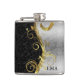 Mit Monogramm, elegantes metallisches, silberfarbenes und schwarzes, blumenschwarzes Damastmuster mit goldblühendem Schwirl