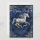 Invite guests to your annual Derby Party with this stunning invitation featuring a silver horse design against a luxurious navy satin backdrop. The intricate floral details and silver accents create a sophisticated and elegant invitation perfect for your upscale Derby event.