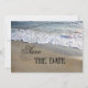 Une carte à la fois simple et élégante Save the Date avec des vagues sur la plage à l'avant et un design bleu poussiéreux à l'arrière. Le modèle de code QR peut être facilement customisé en ajoutant votre propre URL de site Web.