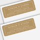 Elegant minimal gold wedding return address label that you can personalize and send out for your wedding party celebration. The bride and grooms name and address are set using stylish classic font typography. Text colors can be changed using the edit menu.