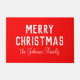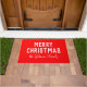 Eine klassische Weihnachtsmatte mit einer lebhaften roten Farbe. Mit fett gedrucktem, modernem Weißtext, der neben einem personalisierten handgeschriebenen Namen oder Nachnamen des Empfängers "Frohe Weihnachten" lautet, ist es eine durchdachte und einzigartige Touch für das Feiertagsgeschenken.