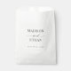 Die elegante Sack-Gastgeschenk Hochzeit mit Simple Script Calligraphy enthält ein einzigartiges Kalligraphieskript, das mit einem stilvollen Typ gepaart ist. Das Schwarz-Weiß-Farbschema ist perfekt für jede Veranstaltung, formell oder lässig.