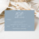 Our simple, elegant dusty blue save the date wedding invitation card with white calligraphy script is perfect for your stylish wedding celebration. A beautiful pairing of white calligraphy font with simple and clean text on a dusty blue background makes for an elevated look to complement your special day. Easy to customize yourself with your own names and wedding event details.