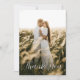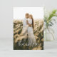 Eine stilvolle Hochzeitskarte mit Platz für Ihr eigenes Foto auf der Vorderseite und die elegante Phrase "Danke". Der Rücken ist in sanften, grünen Farbtönen gehalten, um Ihre persönliche Botschaft zu vermitteln. Vollständig anpassbar — Namen hinzufügen, Text ändern und Ihre aufrichtigsten Worte einbinden. Ideal für Paare, die natürliche Farbtöne und moderne Eleganz Liebe haben.