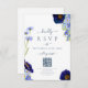 Elégante carte de réponse rsvp de mariage bleu printemps et été avec QR Code pour le site mariage. Floraux d'aquarelle peints à la main unique y compris les fleurs sauvages avec un élégant script de typographie romantique y compris les initiales de mariée et mariée monogramme pour personnaliser avec mariage la date de réponse et les détails du site Web y compris QR Code pour rsvp en ligne en utilisant le modèle facile à utiliser. Fleurs de prairie, y compris des fleurs de maïs, des pavots, des cosmos et ne m'oublient pas avec l'artisanat de feuillage délicat de l'artiste Catherine Sweetman. La palette de couleurs comprend les teintes bleu cornflower, bleu poussiéreux, bleu roux, bleu marine, violet et vert. Idéal pour un jardin botanique ou un mariage d'été de printemps en plein air. Trouvez les articles correspondants dans l'élégante suite mariage de fleurs d'été bleu