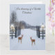 Capture the magic of the holidays with this enchanting Christmas card featuring a serene winter scene. The gentle snowfall blankets the landscape, while elegant gates and twinkling lights lead the way to a dreamy, festive wonderland. Two delicate deer add a touch of whimsy, perfectly complementing the classic "I'm dreaming of a White Christmas" sentiment. This beautifully designed card is sure to warm hearts and spread holiday cheer. Order today to add a festive touch. Pair with matching pieces.