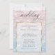 Faire-part de mariage | Eaux océaniques scintillantes et scintillantes au soleil couchant - dans des tons pâles de rose rose poussiéreux et bleu poussiéreux - le texte apparaît sur un cadre doré brillant blanc qui montre le design mais permet de lire facilement le texte. Accentué par une belle calligraphie manuscrite élégante. Facile à personnaliser modèle mariage.