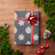 Christmas gift wrap adorned with silver glitter stars and baubles (simulated in art work no glitter used)