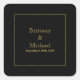Un élégant noir avec cadre doré mariage enveloppe scellé avec les noms de la mariée et du marié et leur date de mariage.