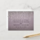 Mit diesen einfach zu anpassenden Postkarten können Sie das Wort über Ihre bevorstehende Hochzeit herausbekommen. Diese speichern die Datumskarten mit einer Darstellung des eleganten, funkelnden Set der Saitenleuchten vor einer dunkelstaubigen Rose in lila rosa Hintergrund. Ihre Hochzeitsdetails sind in eleganter schwarzer Schrift.