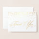Eine elegante Kalligraphie-Skript Dankeschön-Karte mit Goldfolie-Glitzern auf der Vorderseite, und Ihre persönliche Nachricht in der Innenseite. Um diese Entwurfsvorlage zu bearbeiten, ändern Sie den Text in dem oben angezeigten Feld. Klicken Sie auf 'Anpassen', um Bilder hinzuzufügen, Schriftart und Farben anzupassen.