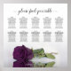 Cette belle carte de sièges mariages a assigné des tables pour 100 invités à 10 tables (10 personnes par table). Le design est élégant, élégant, romantique et chic, avec un rose unique couleur prune violet ou aubergine réfléchissant dans l'eau avec des vagues et des ondulations. Il y a un titre de calligraphie de script en dentelle avec "s'il vous plaît trouver votre table" ainsi que l'espace pour les noms du couple et la date mariage. Un excellent moyen de rendre votre réception belle tout en aidant vos invités à trouver le siège droit.