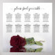 Cette belle carte de sièges mariages a assigné des tables pour 100 invités à 10 tables (10 personnes par table). Le design est chic, élégant, romantique et chic, avec un seul rose de couleur bordeaux, marron ou rouge vif réfléchissant dans l'eau avec vagues et ondulations. Il y a un titre de calligraphie de script en dentelle avec "s'il vous plaît trouver votre table" ainsi que l'espace pour les noms du couple et la date mariage. Un excellent moyen de rendre votre réception belle tout en aidant vos invités à trouver le siège droit.