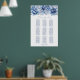 Aidez vos invités à trouver leur table avec cet élégant tableau de sièges bleu fleuri. Il convient à un mariage de 9 tables et 90 couverts.