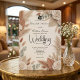 Invite guests with warm earthy tones, watercolor pampas grass, cream roses, and classic calligraphy set against a rustic printed paper grain background.This botanical layout features a warm, earthy color palette highlighting a simulated muted tan and soft rust-orange floral arrangement. The visual hierarchy centers on graceful cursive script, which is framed by watercolor illustrations of dried palm fronds, cream-toned roses, and sage green foliage. The background relies on soft, diffused shading to simulate a rustic, tactile finish. Please note: This is a flat printed image with a printed paper grain effect, not actual raised material.