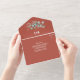 Terracotta, Fall, Eukalyptus, elegant, rustikal, Foto, moderne gefaltete Ehe, QR-Code Hochzeit alle in einer Einladung. Das dreifache, budgetäre Set. Sie können es mit Ihren eigenen Daten personalisiert.