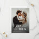 Elegant typography design with timeless serif font and classic calligraphy on couple's photo, additional information and photo on the back, simple and romantic. Great photo save the date cards for modern classic wedding, simple traditional wedding and formal vintage wedding.