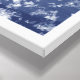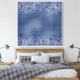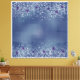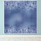 Une pièce élégante avec un arrière - plan bleu avec un effet de peinture acrylique, décorée de minuscules particules blanches dispersées et de fleurs violettes.