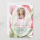 Feiern Sie mit dieser eleganten und anpassbaren Einladung die besondere Erste Heilige Kommunion Ihres Kindes. Dieses Design mit einem sanften Tulpenhintergrund in Rosa-, Rot- und Grüntönen verleiht dieser Einrichtung eine Touch von natürlicher Schönheit und Wärme. Das ovale Foto in der Mitte erlaubt es, die Karte mit dem Kinderbild zu personalisieren, was sie zu einem wahrhaft einzigartigen Sake macht. Die raffinierten Drehbücher und Serifen-Schriftart in Gold und tiefgrünem Grün schaffen ein raffiniertes, traditionelles Ambiente, das perfekt für diesen heiligen Anlass geeignet ist. Ideal für die Einladung von Familie und Freunden, um diesen bedeutsamen Meilenstein zu teilen. B011