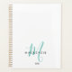Élégant Turquoise de script blanc Monogram planificateur. Un élégant monogramme de script turquoise combiné à une police san-serif noire propre donne un look contemporain.