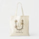 Das Design der Tote-Tüte ist in einer stilisierten U-Form mit zarten Uva ursi-Blume in hellbraun und beige gehalten, mit verstreuten grünen Blätter und Samentöpfen, die ein natürliches, botanisches Ambiente schaffen. Anpassbar mit einem Namen unter dem Monogramm für eine persönliche Touch.