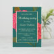 Elégant vert foncé avec des fleurs roses invitations d'anniversaire pour un anniversaire chic et romantique.