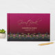 Beau livre d'hôtes mariage réalisé dans un design damassé rouge vin avec une bordure noire solide, sur le fond. Graphiques d'une couleur or métallique à l'aspect floral garland avec des fleurs d'accent rose et bleu émail, décorent à travers le fond, du livre. Le texte graphique en tons or indique Guest Book. Personnalisez le texte personnalisé, pour votre journée spéciale.