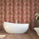 Dieses elegante Tapete mit Blumenmuster auf einem rosa Rose-Hintergrund. Der perfekte Akzent für Ihre Wohngestaltung.