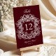 Elegant Vintage Crest Burgundy Wedding Tischnummer