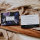 Chic certificat cadeau floral affiche votre texte personnalisé (illustré par "un cadeau pour vous") sur un motif de roses violets lavande pâle luxuriants et de pivoines bleu indigo profond sur un arrière - plan sombre et dramatique. Ajoutez le libellé de votre certificat cadeau et les coordonnées de votre entreprise au verso avec garniture noire. Un choix moderne et élégant pour les boutiques, salons, maquilleurs, coiffeurs ou tout commerce. Disponible sous forme professionnelle imprimée ou en téléchargement numérique.