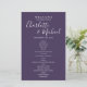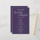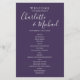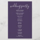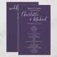 Simple élégant script de signature violet programme d'accueil mariage avec des noms de style signature. Personnalisez avec vos informations mariages spéciales en lettres blanches chics et modernes. Conçu par Thisisnotme©