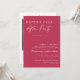 Diese Hochzeitserie Empfang Party Einladung bietet einen sauberen und einfachen Serif-Typografie-Schriftart und elegante Kalligraphie auf einem viva magenta Hintergrund mit einem Foto und QR Code für einen sauberen minimalistischen und modernen Look, was eine schöne Art ist, Ihre Familie und Freunde zu informieren, dass Sie verheiratet sind und es jetzt Zeit zum Party! Die Einfachheit dieses Designs fügt Ihrer Hochzeitsankündigung eine Touch Eleganz hinzu. Es funktioniert mit vielen Hochzeitsthemen und ist definitiv eine großartige Ergänzung zu Ihrer Hochzeit. Einfach Namen und Formulierungen in ein paar einfachen Schritten anpassen und die Einladungskarte mit Ihrem Foto des glücklichen Paares personalisieren und den QR-Code durch Ihren ersetzen, auf der Rückseite der Einladung, um Ihrer Einladung eine angenehme persönliche Touch zu geben. Bitte beachten Sie: Die elegante Kalligraphie der Formulierungen "Happily Ever After Party" und "Bitte schließen Sie uns an, damit ein Empfang feiert" auf der Vorderseite sowie "und" und "Details + uAwg" auf der Rückseite zusammen mit den Zeilen und anderen grafischen Werken und Elementen können nicht bearbeitet, gelöscht oder verschoben werden. Sie sind repariert. Wenn Sie die Farbe ändern müssen, können Sie die Einladungskarte anpassen. Sie können die Einladung anpassen und personalisieren, um Ihren Hochzeitsbedürfnissen gerecht zu werden. Klicken Sie einfach auf die Einladung. Sie können die Einladung ganz einfach als digitalen Download personalisieren und elektronisch versenden und mit Ihren Gästen über SMS, E-Mail oder Social Media teilen. Oder Sie können auch die Einladung bezüglich Ihrer Daten an Ihre Gäste schicken/schicken. Oder Sie erhalten beides - gedruckte Einladung und erhalten die Einladung in digitaler Form als Sofortdownload.