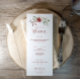 Celebrate the holidays with this elegant watercolor Christmas dinner menu featuring botanical greenery, poinsettias, and floral accents. The festive watercolor design adds warmth and charm, creating a refined look for holiday dinners, winter weddings, or Christmas parties. A perfect way to showcase your courses with seasonal elegance and timeless style.